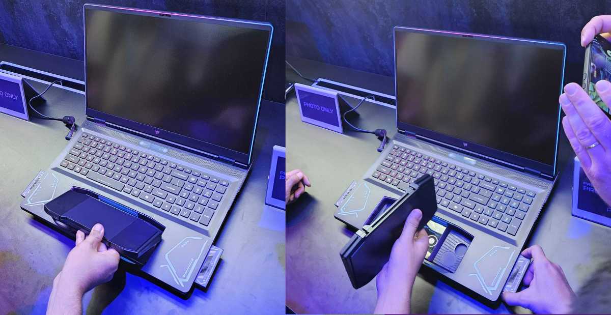 Acer says that the wireless touchpad is held in place with an “electromagnetic lock,” and when it’s released the laptop’s speakers also pop out from the sides.