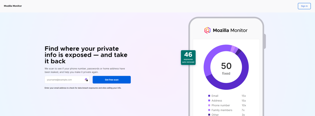 Should time be worth than money, you can instead pay for automated notifications of when you appear on broker sites—and help in removing yourself from them. For example, OneRep, the company powering Mozilla Monitor’s premium Plus tier, scans over 190 data broker sites and the rest of the web for your information monthly, and also automatically handles the opt-out requests. Meanwhile, other rivals like DeleteMe claim to wipe your info from more sites, but at less frequent intervals (every three months) for about the same cost. Premium antivirus suites may also include automatic removal (the two most expensive plans from McAfee, for example), though the number of data broker sites they cover may not be as high as dedicated services.