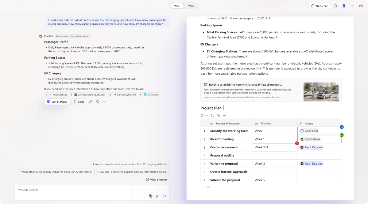 Copilot in Word: “Coming later this month, Copilot in Word will enable you to quickly reference not only web data and work data like Word, PowerPoint, PDFs, and encrypted documents, but also emails and meetings,” Microsoft said. Microsoft recently added suggested prompts, which are generally available.
